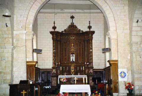 Au-delà de la nef à trois vaisseaux séparés par des arcades en plein cintre aux supports quadrangulaires, et simplement plafonnée, s’étend le chœur dont l’emprise au sol est plus vaste et la construction plus recherchée puisqu’on y retrouve l’emploi de la pierre de taille. Il s’étire sur deux travées au-delà de l’arc triomphal qui pourrait remonter au XIIIe siècle. Les parties orientales conservent des témoins de fortification dans l’amorce d’une tourelle en encorbellement dans l’angle sud-ouest, à proximité de la nef. Ces éléments font écho aux renforcements de la tour-porche, pourvue d’un assommoir derrière un arc plein cintre en brique lancé à l’ouest entre les deux contreforts d’angles. Ils sont tout à fait caractéristiques de la fortification des églises de Thiérache aux XVIe et XVIIe s., dans cette région frontière exposée aux ravages des pillards tirant profit du conflit entre la France et les Impériaux.