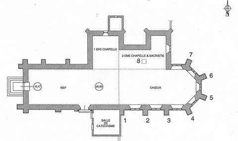 Église dédiée à saint Thibaut, après l’avoir été à Notre-Dame, elle date en partie du XIe s., mais a été remaniée aux XVe, XVIe et XVIIIe siècles. C’est un ancien prieuré-cure de l’abbaye de Villeloin. Le fief de Francueil appartenait aux Marques, seigneurs de Chenonceau, et la proximité de ce célèbre château et le patronage des familles qui s’y sont succédées jusqu’aux Dupin expliquent les développements de l’édifice malheureusement dépourvu depuis de ses richesses intérieures. De la nef romane subsistent le mur sud en petit appareil irrégulier et sa porte méridionale en plein cintre encadrée de colonnes engagées et chapiteaux à feuillage. La façade occidentale a été modifiée au XVIe siècle. L’archivolte de la porte en arc surbaissé s’appuie sur deux culs-de-lampe à personnages mutilés. La nef est couverte d’une charpente lambrissée. La chapelle seigneuriale du XVe s. au nord est voûtée sur croisée d’ogives ; elle communique à l’est avec une petite chapelle aménagée dans la base de l’ancien clocher et voûtée sur croisée d’ogives prismatiques. Le chœur reconstruit au XVIe s. est très homogène : deux travées droites voûtées sur croisées d’ogives et liernes longitudinales et une abside à cinq pans voûtée sur six ogives dont la clé porte un blason meublé de trois clefs sur champ d’azur. Le tout est éclairé au sud et à l’est par cinq grandes baies à remplage flamboyant. La Sauvegarde de l’Art français a accordé en 1998 une aide de 150 000 F pour la réfection des rampants des pignons, de la charpente et de la toiture.