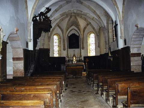 Les murs de la nef et de l’abside sont habillés de boiseries du XVIIIe s. (Régence). La chaire a été conservée. Le retable à baldaquin, porté par quatre colonnes corinthiennes en marbre, a disparu. Un bénitier, dans l’entrée, est daté de 1575.