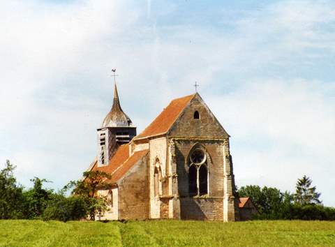 Les parties orientales ont été construites au XIIIe s., mais les bras du transept dont on distingue encore des amorces près de la croisée ont dû disparaître au XVIIIe s. au profit des deux modestes annexes latérales. Les puissants piliers cylindriques de la croisée ont été repris à la même époque, une fine mouluration venant alors remplacer le couronnement initial, qui était analogue sans doute aux chapiteaux de la travée de chœur beaucoup mieux conservée. Les dimensions imposantes de la croisée tranchent avec le caractère relativement trapu des autres parties de l’édifice. Les murs du chevet sont percés de grandes baies composées de deux lancettes sous un oculus, la baie orientale étant plus soignée que les autres. Le profil des arcs, ogives et doubleaux, la clef de voûte dépourvue de décor, l’épaisseur des formerets, renvoient indubitablement à l’architecture de la cathédrale de Reims, de même que les piliers de type cantonné de la croisée. Rien ne s’oppose à une datation pouvant remonter aux années 1220-1230 de cette partie de l’église qui traduit sans doute l’aisance du commanditaire, peut-être le patron de l’église, qu’il s’agisse du prieuré d’Acy-Romance près de Rethel, qui n’est pourtant attesté qu’à partir de 1572, ou de tout autre établissement.