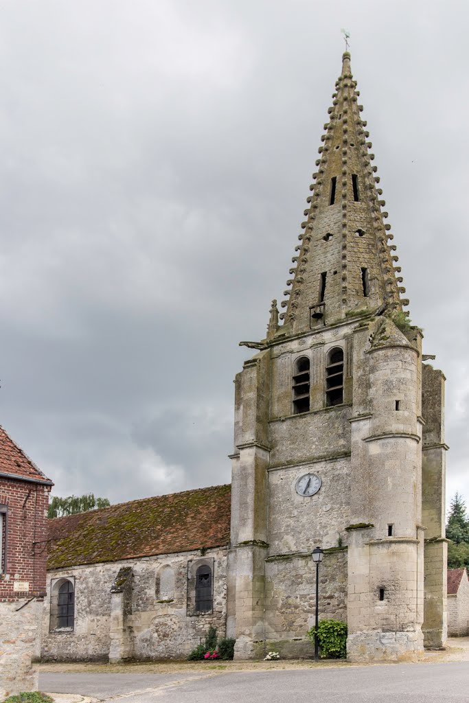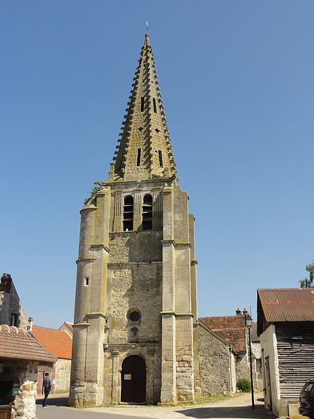 Un clocher porche, d’exécution soignée, vient compléter ces transformations. Le portail, très simple, est encadré par des pilastres lisses et surmonté d’une petite niche et d’un oculus. Au-dessus d’une importante portion de mur nu, l’étage du beffroi se signale par les pilastres cannelés à chapiteaux ioniques qui encadrent les baies en plein cintre et la délicate frise décorée de masques et de choux frisés qui tient lieu de corniche. Au-dessus, la flèche octogonale en pierre aux arêtes garnies de crochets continue la tradition des flèches romanes et gothiques du Valois. Aux angles, une gargouille et des petits pinacles.