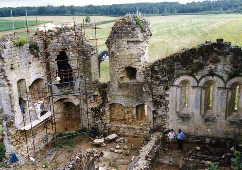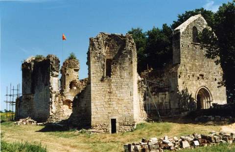 La commanderie des Hospitaliers de Saint-Jean de Jérusalem de Sallebruneau est située dans l’Entre-Deux-Mers, à michemin entre Rauzan et Sauveterre de Guyenne. L’ensemble, aujourd’hui en ruines, se composait de deux édifices accolés, l’église au sud, la commanderie au nord, disposition que l’on rencontre en Saintonge dans des ensembles du même type. On peut lire encore des traces nombreuses des fortifications, confirmées par les recherches de J. Gardelles et de Ch. Higounet. Ces logis, moins soigneusement construits que les églises attenantes, n’ont été que très rarement conservés. Les éléments défensifs de la commanderie de Sallebruneau, échauguette d’angle, archères cruciformes, sont d’un grand intérêt, ce qui justifie les mesures de sauvegarde entreprises par l’association Recherches Archéologiques Girondines. Le plan du logis s’inscrit dans un rectangle (19,5 x 24,6 m) dont chaque angle est protégé par une fortification : une tour à l’angle nord-ouest et à l’angle sud-ouest, une échauguette à l’angle nord-est, et une autre à l’angle sud-est, en grand danger d’écroulement. En effet, les restes de l’échauguette qui forment le lien entre église et château, et qui présentent par là même un intérêt incontestable, forment un surplomb qui n’est plus compensé par le contrefort adossé. Le logis de la commanderie date du XIVe s. ; il semble avoir été ruiné pendant les troubles des années 1574-1575. Au contraire, l’église fut maintenue comme église paroissiale jusqu’à la fin du XIXe siècle. Atteinte par une tempête en février 1879, sa ruine était consommée dans le deuxième quart du XXe siècle. Elle peut être datée du dernier quart du XIIe siècle. De plan rectangulaire à chevet plat, elle conserve la trace de trois fenêtres hautes en plein cintre et de trois contreforts ; dans la façade occidentale s’ouvrait une porte en arc brisé à voussures, surmontée d’un clocher peigne. Une des cloches datait de 1778. On reconnaît également deux contreforts le long du mur sud et le triplet du chevet. À l’intérieur, un arc triomphal faisait communiquer la nef et le chœur. Trois fenêtres hautes à double ébrasement s’ouvrent sur la nef. Les archivoltes de ces fenêtres sont ornées de tores et de pointes de diamant, les impostes sont décorées d’entrelacs. Dans l’angle sud-ouest de l’édifice, on peut reconnaître des restes de peintures et un enfeu sous un arc brisé orné de moulures, dans le mur sud du chœur, deux niches, qui ont abrité lavabo et armoire eucharistique. Il reste encore des traces de l’autel en pierre et du pavement. Entre le chevet et l’autel s’élève une petite sacristie du XVIIIe siècle. Sous l’enduit apparaît dans l’édifice un bel appareil à joints vifs, à l’exception du mur sud dans lequel on trouve un petit appareil cubique à joints creux (XIV-XVe siècles). Des bases de colonnes et des chapiteaux, que l’on peut dater de la fin du XIIe s., ont été retrouvés lors de prospections archéologiques. À la demande de l’architecte des Bâtiments de France, la Sauvegarde de l’Art français a accordé à l’association en 1999 une subvention de 11 000 F, pour permettre la reprise et la confortation de l’angle sud-est de la Commanderie.