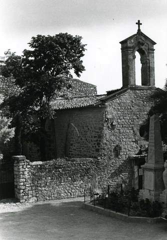 À l’intérieur d’un village fortifié qui domine la plaine du Rhône et à proximité de l’église paroissiale, la chapelle des Pénitents blancs est une construction rectangulaire de 13 m sur 4 m qui a été utilisée par cette confrérie au xviie s., mais son origine peut remonter au xiie s. comme en témoigne la belle fenêtre géminée conservée à l’extérieur du mur sud. On ignore cependant la fonction de ce bâtiment jusqu’à l’arrivée de Pénitents blancs peu avant 1631. Mais la confrérie semble avoir cessé toute activité entre 1661 et 1715. De nouveau rétablie, elle répare la chapelle dont il ne restait plus que les quatre murs. On procède à l’établissement d’une nouvelle toiture, aménagement d’une sacristie et établissement du clocher. La porte d’entrée fut, sans doute, refaite à la même époque. Le mobilier liturgique, connu par les comptes de 1716 à 1783, a disparu dans la tourmente révolutionnaire mais le mur oriental, à l’intérieur, est décoré d’une fresque, classée monument historique le 24 mai 1976 ; elle représente deux pénitents agenouillés.Au cours du xixe s., la confrérie des Pénitents blancs a repris certaines activités, mais a disparu dès 1880. La chapelle était encore ces dernières années en médiocre état, mais son utilisation par le club Unesco de La Garde-Adhémar lui a rendu vie. La Sauvegarde de l’Art français a aidé à la réfection du gros œuvre pour 20 000 F en 1986.
