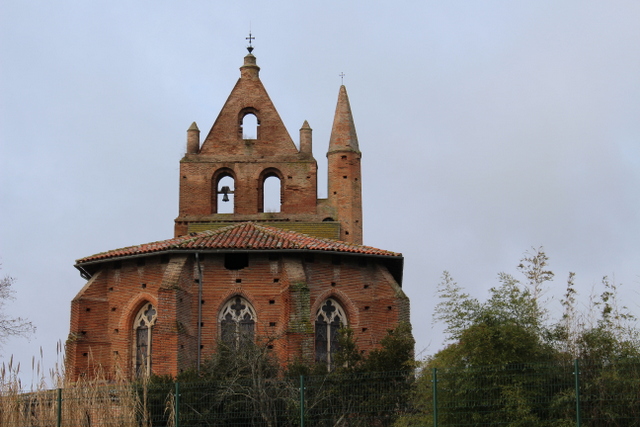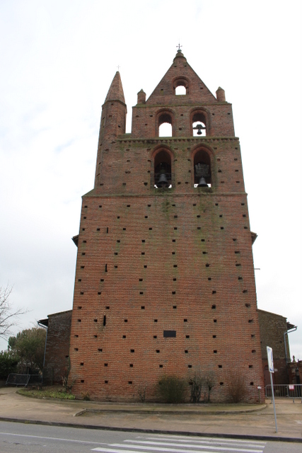 Eglise de style gothique méridional, c’est à dire construite en briques et formée d’une nef rectangulaire, et terminée par un chœur formant abside à trois pans. La couverture est en tuiles canal. Trois chapelles s’ouvrent sur la nef. La sacristie est adossée extérieurement à la travée du chœur. Nef, chœur et chapelles sont voûtés. Le clocher qui remonte à 1557, est composé de trois étages et percé de cinq baies. Une petite tourelle renferme l’escalier qui y donne accès. Un crénelage règne au sommet des murs, sous le comble.