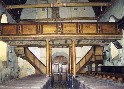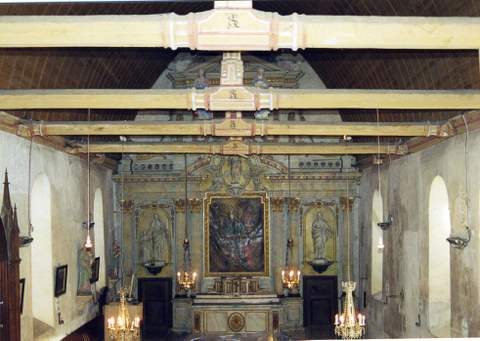Au XVIIe s., tout le fond du chœur a été orné d’un grand retable à colonnes et pilastres, peintures et sculptures, d’un grand effet décoratif. Un curieux ensemble de menuiserie de la même époque présente au-dessus d’un confessionnal une chaire panneautée surmontée d’un important abat-voix. On notera dans le mobilier un baldaquin sculpté gothique du début de la Renaissance et sur la poutre de gloire un calvaire en bois sculpté de la même époque. Le XIXe s. a ajouté une tribune, refait les peintures de la voûte et pourvu les fenêtres de vitraux.