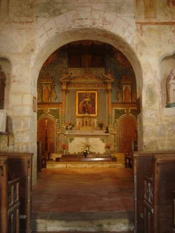La nef et le chœur sont couverts d’un berceau brisé lambrissé. Les deux espaces communiquent par un arc diaphragme assez étroit. Le maître-autel, qui constitue l’élément mobilier majeur de l’édifice, est adossé au mur-pignon de l’édifice, prolongé par une sacristie au XVIIe siècle.