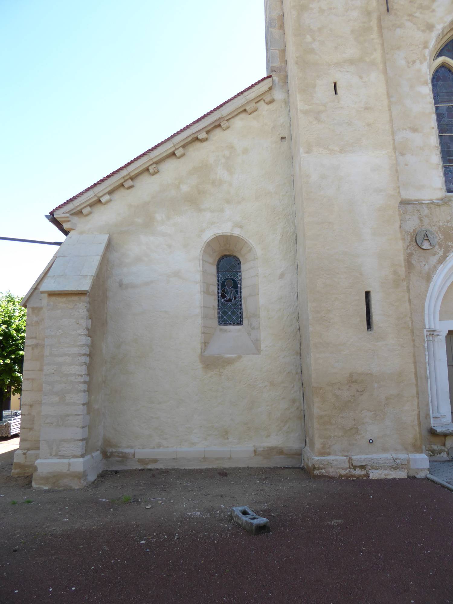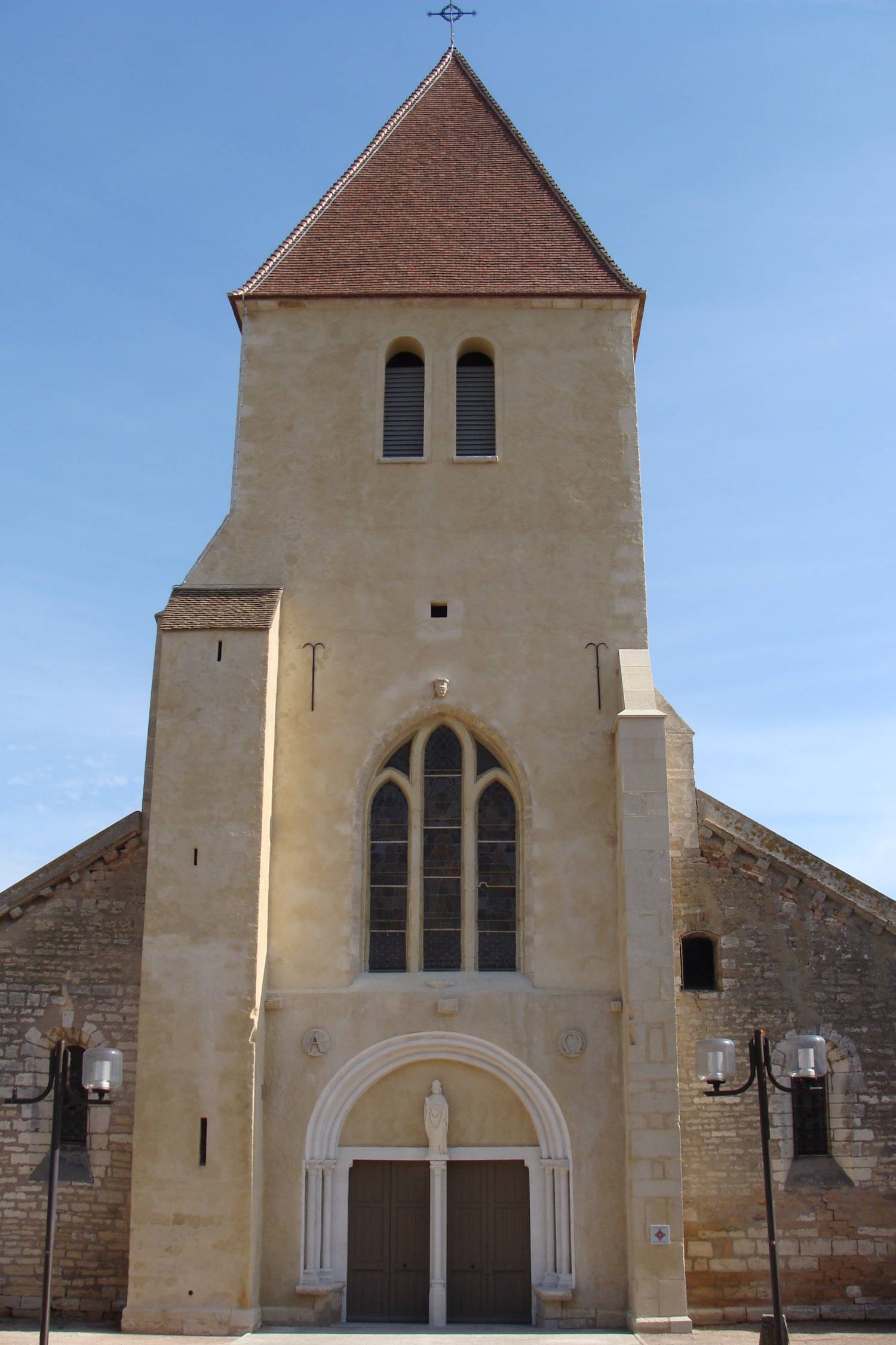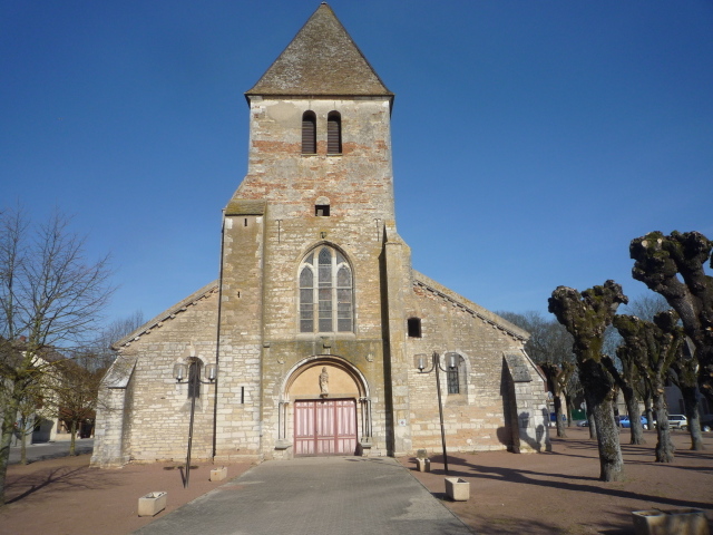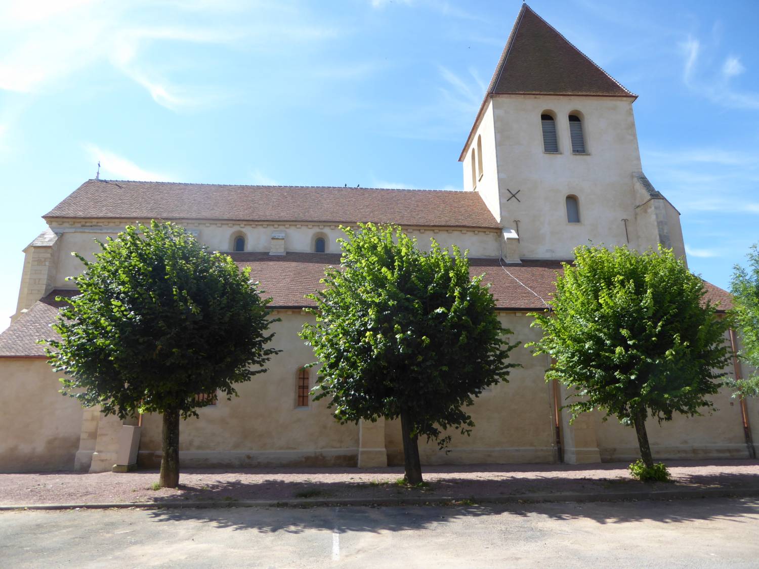 La 1ère mention de cette église remonte à 1251, mais la construction de l’édifice actuel, sur les bases d’une église antérieure, date de la 1ère moitié du XIIIe siècle (Claude Joannelle attribue sa construction au prieur de Saint-Marcel de Chalon, décimateur de la paroisse et patron de la cure). Dans la 2e moitié du XVe siècle, Jean Lebault, anobli par Philippe le Bon en 1462, érige pour sa famille, dans la 1ère travée du bas-côté gauche, une chapelle funéraire dédiée à saint Jean-Baptiste. Il y fait sculpter ses armoiries sur les supports et ajouter un lavabo orné d’une accolade. Au XVIIe siècle, le clocher s’écroule entraînant avec lui une partie de la façade et des voûtes de la nef. La date de 1644, gravée sur le contrefort droit correspond à sa reconstruction et à la réfection de la nef dont le portail perd alors son tympan d’origine et une partie de sa voussure. La sacristie date du XVIIIe siècle.