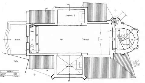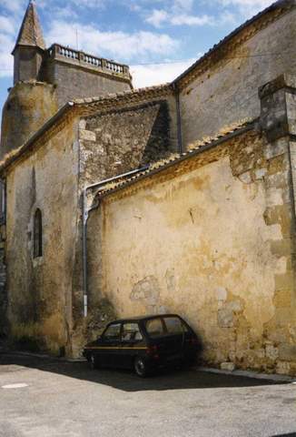 Le gros village de Gondrin se situe au sud de Montréal et à l’est d’Eauze, près de la vallée de l’Auzoue, à proximité du chemin de Saint-Jacques de Compostelle qui allait de Condom à Eauze, et non loin du château de Lamothe, fief des Pardailhan-Lamothe-Gondrin. Il semble que l’église primitive du XIIe s. se composait d’une nef unique et d’une abside hémi circulaire, seul témoin subsistant de cette première église. Au XIVe s., l’église a été agrandie de quatre chapelles voûtées. En 1731, le clocher et la charpente de l’église ont brûlé: la réfection des parties hautes, sans réfection des voûtes cependant, se serait achevée en 1777. C’est également à cette époque, où s’affirmaient l’expansion démographique du village et le besoin de nouveaux espaces, que l’église, agrandie d’une travée vers l’ouest, fut ornée d’une belle façade classique et d’une tribune intérieure. Au XIXe s., la flèche du clocher, qui avait été détruite par une tempête, ne fut pas reconstruite ; le clocher fut alors coiffé d’une toiture plate et couronné par une balustrade. On peut supposer que la terrasse a abrité quelque temps un télégraphe Chappe. Enfin, en 1890, on plaqua une halle et une école contre l’angle sud-ouest de la façade, ce qui insère malencontreusement l’édifice dans le tissu de cette petite ville. Le plan de l’édifice se compose d’une nef unique sur laquelle ouvrent deux chapelles, une au nord et une au sud, et d’une abside arrondie. L’élévation du chevet, qui supporte le clocher, est d’une hauteur inhabituelle. Une tourelle circulaire abritant un escalier le flanque du côté sud. Dans l’axe du chevet s’ouvre une étroite fenêtre romane. Des contreforts plats sans doute tardifs scandent les murs. Au sud-est, un appentis occupe la place d’une des chapelles du XVIIIe s., aujourd’hui disparue, au nord une arche relie l’église à une maison voisine. L’axe de la façade occidentale est marqué par le portail en plein cintre, un œil-de bœuf et une ouverture circulaire de moindre diamètre, ouverte dans le couronnement triangulaire du mur pignon ; celui-ci est flanqué de deux ailerons qui s’amortissent au premier niveau des bâtiments qui bordent l’édifice au nord et au sud. À l’intérieur, la nef et le faux transept sont couverts d’un lattis hourdé au plâtre. L’église possède un mobilier intéressant des XVIIIe et XIXe s., notamment une peinture de la Crucifixion (XVIIIe s.), une Remise du Rosaire et un saint Michel (XIXe s.), deux autels en marbre achetés en 1846 et deux confessionnaux. La Sauvegarde de l’Art français a accordé une somme de 80 000 F en 1999 pour la restauration complète de l’église, couverture, réparation de la charpente, reprises de maçonnerie et réfection en conservation des enduits et du décor peint de l’intérieur de l’église. L’édifice était fermé depuis plusieurs années en raison de son état de péril.