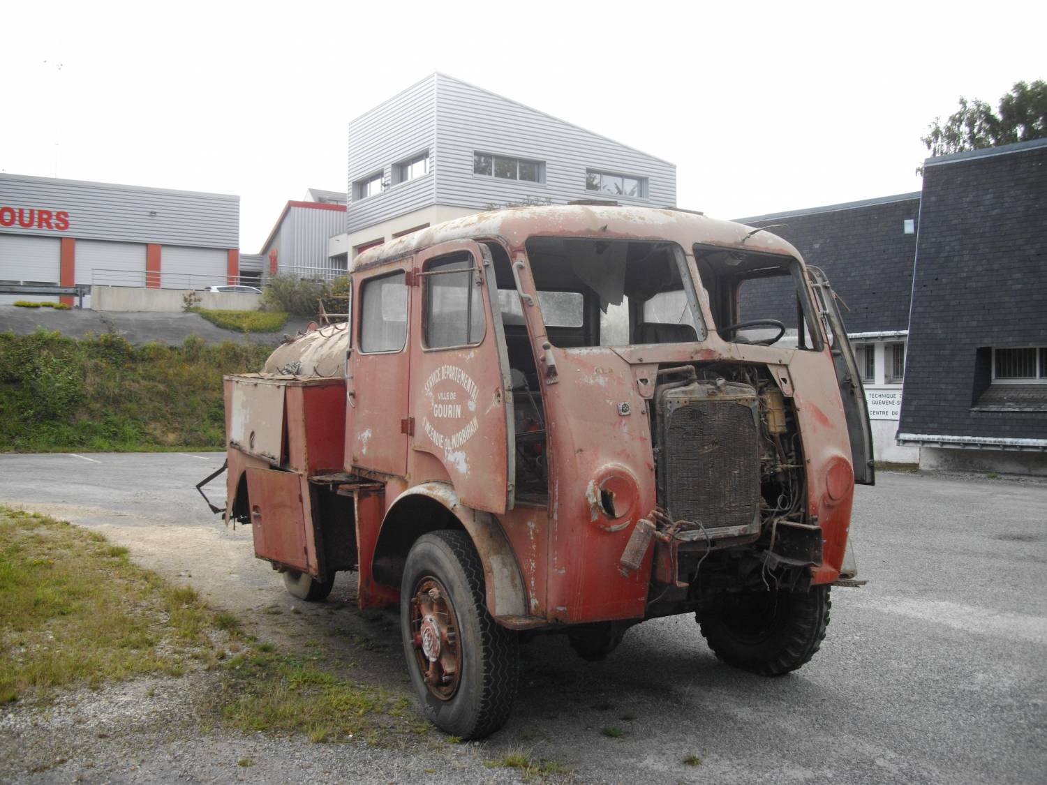 Située à 90kms au nord-ouest de l’usine, Gourin est une commune de 25 000 habitants. Elle possède un patrimoine très riche et varié. Une association locale gère notamment un patrimoine atypique… L’Association Départementale de Sauvegarde des Véhicules Anciens Roulants des sapeurs-pompiers du Morbihan (l’ADSVAR) est propriétaire de 27 camions anciens. Très méritante, l’association a restauré ces dernières années la quasi-totalité de sa flotte automobile. Aujourd’hui, presque tous les camions sont en état de fonctionnement et défilent régulièrement.