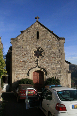 L’église est citée en 1238. Elle est dédiée à saint Vincent diacre, comme plusieurs églises ou chapelles qui dépendaient de l’évêque de Rodez et du chapitre (Rodez dès le VIe s., Muret, Palmas, Lugan de Quins…). D’abord église matrice, elle devient annexe de Goutrens, sur le causse, et elle est alors régie par un vicaire, faisant office de pro-curé. Chapelle castrale, elle s’appuie au nord contre le rocher du Castel-vielh. Sa position en hauteur, sur un palier étroit, la met en valeur. Malgré le peu de place disponible, elle est orientée, mais une déviation dans la partie gauche du chœur donne l’impression qu’elle est tournée vers le sud-est. Le mur gouttereau de la nef, au sud, côté vallée, épais et rectiligne, la travée rectangulaire, qui vient après le chœur, le clocher trapu qui la surmonte, avec sa tourelle d’accès, et la chapelle de droite, avec sa baie gothique à remplage, sont tout ce qui reste d’une reconstruction cohérente, datable du XIVe ou du tout début du XVe siècle.