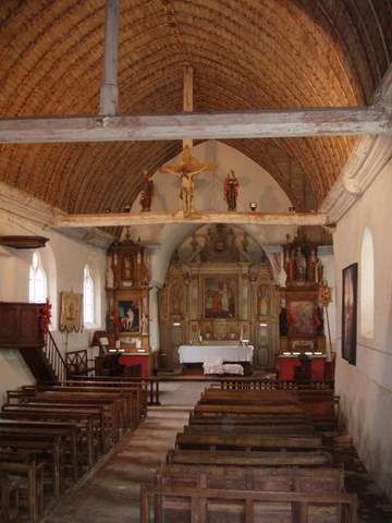 Au-dessus du chœur, de la chapelle sud et de la partie orientale de la nef, la voûte lambrissée est dépourvue de décors peints ou sculptés, qui ont sans doute disparu à l’occasion de restaurations anciennes. L’église conserve également une importante statuaire, un ensemble de trois autels avec retables et surtout des fragments de vitraux du XVIe s., dont l’un daté de 1559.