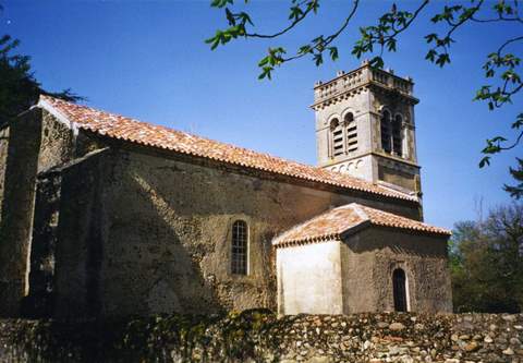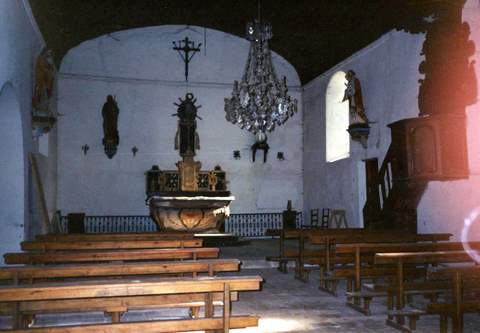 L’ensemble est construit en galets, la couverture est en tuile canal. Le volume intérieur très simple est couvert d’une voûte lambrissée, récemment refaite. Un beau retable du XVIIIème s., une chaire de la même époque et quelques statues anciennes ornent cette modeste église. La Sauvegarde de l’Art Français a accordé en 1995 une subvention de 30 000 F pour le drainage extérieur des murs et diverses réparations portant sur la charpente et la couverture.