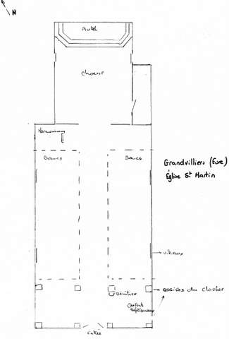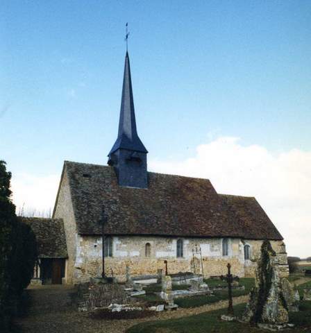 Le seul vocable de saint Martin suffit à témoigner de l’ancienneté de cette église du sud de l’Eure, dont le patronage est accordé, vers 1050, par Robert de Granvilliers à l’abbaye de Saint-Wandrille. Contestée par son fils Ginoud quelques années plus tard, la donation fut néanmoins confirmée par ses descendants. L’origine romane de cet édifice apparaît aujourd’hui dans quelques détails, dont la trace d’une petite baie du sud de la nef. Très endommagée pendant la guerre de Cent Ans, l’édifice est en grande partie reconstruit au début du XVIe siècle. Sa dédicace et la bénédiction du cimetière par Toussaint Varin, qui avait le titre d’évêque de Thessalonique, interviennent en 1514.