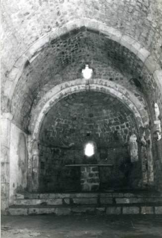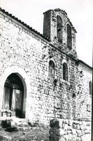 Chapelle Saint-Étienne. Nous empruntons à Monsieur Jacques Thirion (Alpes romanes, Éditions du Zodiaque, 1980, page 53) la description suivante : « Le village de Gréolières au pied du versant sud du Cheiron surplombe la vallée du Loup. Il est dominé par les ruines du hameau déserté des Hautes-Gréolières. Près des ruines du château, subsiste l’église romane, dédiée à saint Étienne et jadis unie à un canonicat de la cathédrale de Vence. L’édifice, probablement du xiiie s., est modeste ; nef voûtée en berceau brisé et abside couverte d’un cul-de-four en plein cintre. » Ajoutons que la nef comporte trois travées et que l’unique entrée, percée au sud de la première travée, est surmontée d’un clocher-arcade. La demande d’aide adressée à la Sauvegarde concerne essentiellement la toiture. Le devis est de 34 000 F dont 15 000 pour la couverture. La Sauvegarde de l’Art français subventionne cette opération pour un montant de 7 000 F.