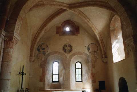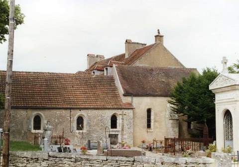 Les chapiteaux peuvent être comparés à ceux des églises voisines de Chablis ou de Sainte-Vertu, alors que le chevet plat s’apparente à ceux de Molay, Sacy ou Villiers-La-Grange. La retombée des ogives est supportée par des culots d’angles. Deux fenêtres en plein cintre percées dans le mur sud éclairent les deux travées du chœur. Cet ensemble a été plâtré au XIXème s. et récemment dégagé. Il est recouvert d’un badigeon ocre jaune pour les murs et les voûtains et d’un badigeon ocre rouge pour les ogives, les piliers engagés et les encadrements de baies. Plusieurs médaillons circulaires représentent le Christ bénissant et les Apôtres. Sous chacun d’eux, restent des traces de croix de consécration. L’ensemble de ces peint ures peur être daté du XVIème siècle.