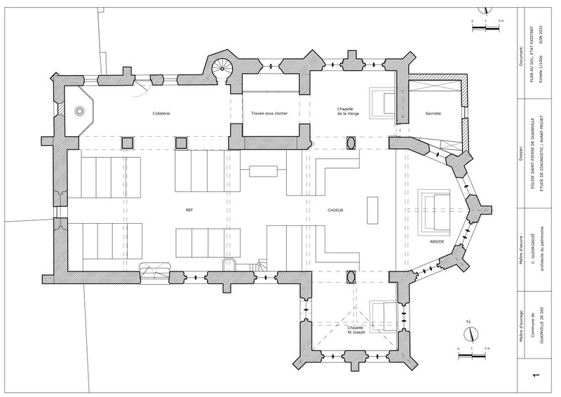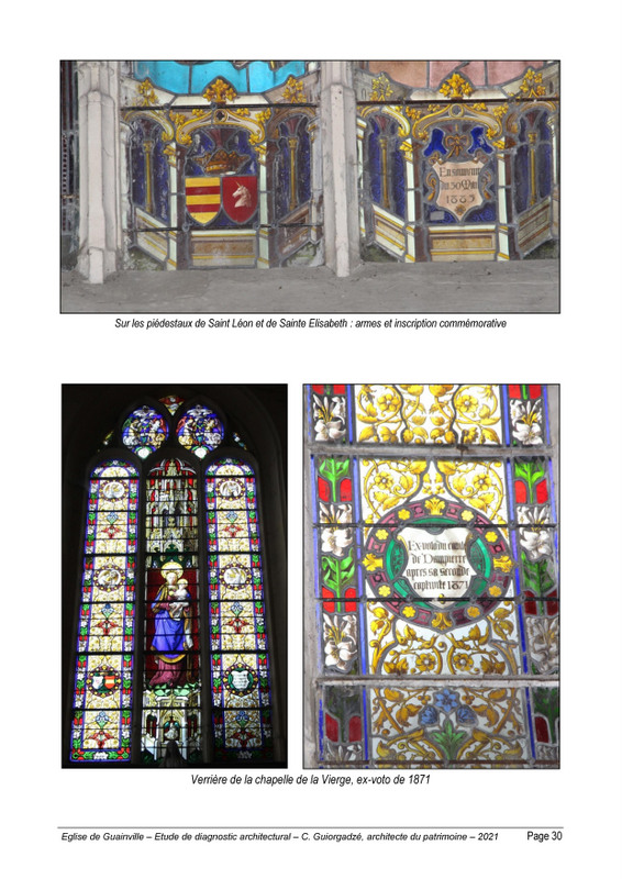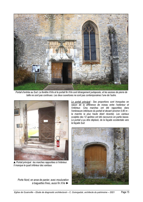 Le niveau supérieur du clocher date aussi de la 2nde moitié du 16e siècle ou du 17e siècle. On y trouve des analogies avec les façades des collatéraux de l’église paroissiale d’Anet.
