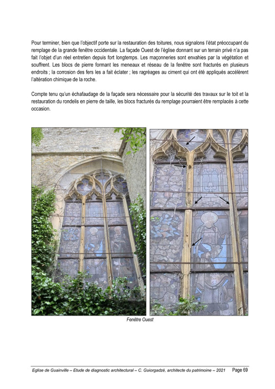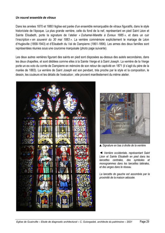 Similitude avec l’église voisine du Mesnil Simon : abside à 4 pans, clocher au milieu du collatéral, même pierre de Vernon