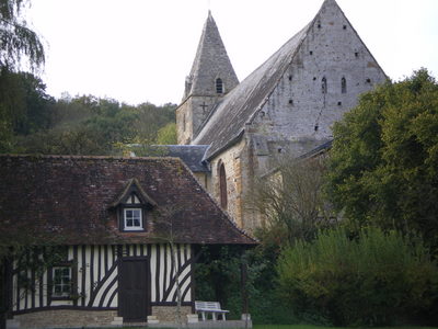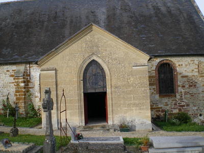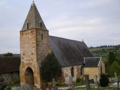 Le plan terrier des années 1770 témoigne de l’ensemble formé alors par le château édifié sur sa motte féodale, le presbytère et l’église. Ne figure pas sur le tracé au sol, schématique, de cette dernière, la chapelle funéraire construite en 1847 sur le flanc sud de l’église par la famille de Mackau. L’amiral Ange-Ferdinand-Armand de Mackau (1788-1855), un temps ministre de la Marine, et le baron Ange-Ferdinand-Armand de Mackau, député de l’Orne, en sont les membres les plus notables. Ce dernier, organisateur du bazar de la Charité, perdit dans le tragique incendie de 1897 sa belle-soeur, Isabelle Maison, veuve d’Albert de Vatimesnil. Une plaque lui est dédiée et un des vitraux de l’église rappelle ce drame.