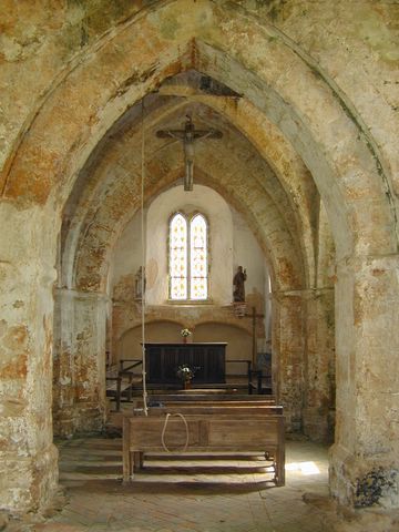 Église Saint-Jean de Villedieu, ancienne chapelle d’une commanderie, succursale de l’église paroissiale de Haucourt. La Sauvegarde de l’Art français se devait d’aider, par des subventions se montant au total à la somme de 120 000 F, l’œuvre accomplie par une association locale de sauvegarde qui doit être citée comme l’exemple de ce que peut accomplir un bourg de 224 habitants. Le monument à sauver de la ruine est, en effet, d’une valeur archéologique de premier ordre que met parfaitement en évidence le plan que nous publions ainsi que le détail de la structure et de l’élévation. C’était l’église d’une commanderie de l’Ordre de saint Jean de Jérusalem. L’architecture religieuse des Templiers, dont il ne reste en France qu’un nombre limité d’exemples bien conservés, comme celui de Haucourt, fait penser à la force et à la précision des divers éléments d’une armure. Il y avait des liens directs entre les commanderies et les fiers châteaux de Terre Sainte. En Occident, c’est un souvenir singulièrement évocateur du grand rêve que fut pour les hommes du Moyen Âge l’espoir de la reconquête des lieux saints.