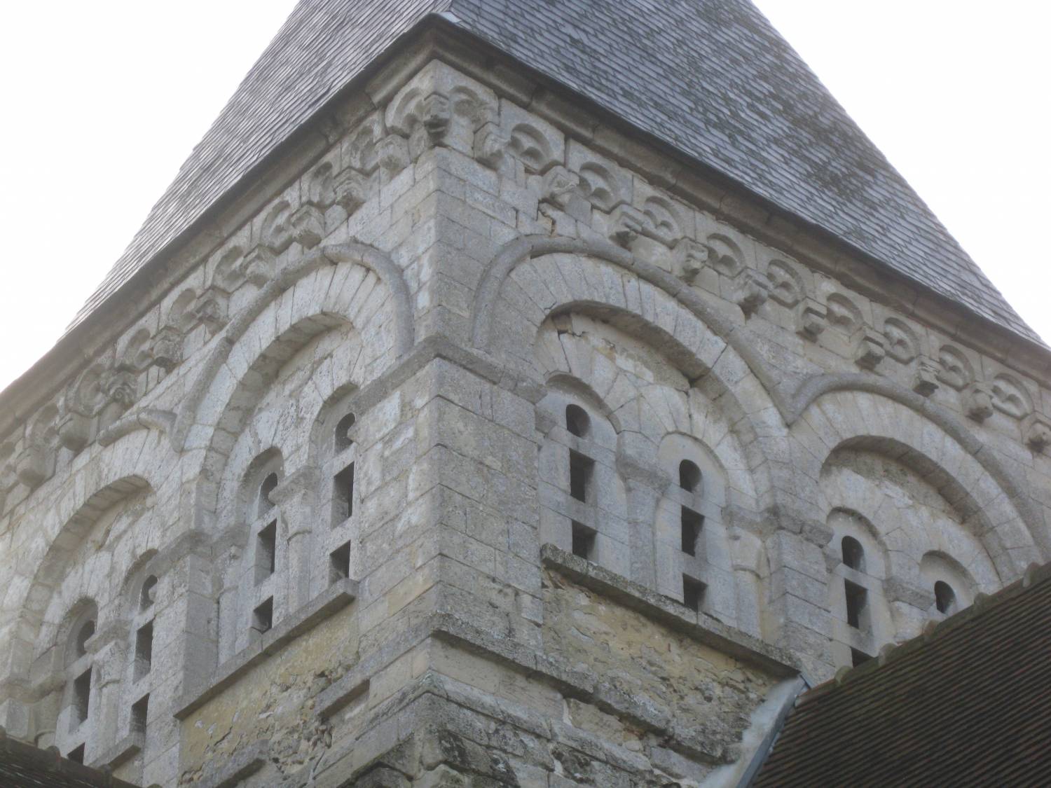 L’élément le plus ancien est constitué par la tour quadrangulaire établie à la croisée du transept, dont les formes romanes accusent la première moitié du XIIe siècle. Formant à l’origine un puits de lumière au-devant du chœur, cette tour de croisée n’a été que tardivement transformée en clocher, par l’installation d’un beffroi charpenté dans la partie supérieure. Au premier niveau, les quatre piliers de la croisée sont aujourd’hui isolés et reliés aux murs périphériques plus tardifs par des arcades ou des voûtes diagonales. Une voûte d’ogives tardive sépare à présent la croisée de l’étage intermédiaire de la tour, dont les quatre faces étaient rythmées par des arcatures entrecroisées, encore visibles dans les combles. L’étage supérieur de la tour est percé de belles baies géminées – en partie obturées au moment de l’installation du beffroi – et couronné par une corniche beauvaisine. Au moment de la surélévation du chœur, la face orientale de la tour a été reconstruite et ses baies supprimées. La transformation tardive de la tour en clocher pourrait être contemporaine de la fonte d’une cloche en 1753.