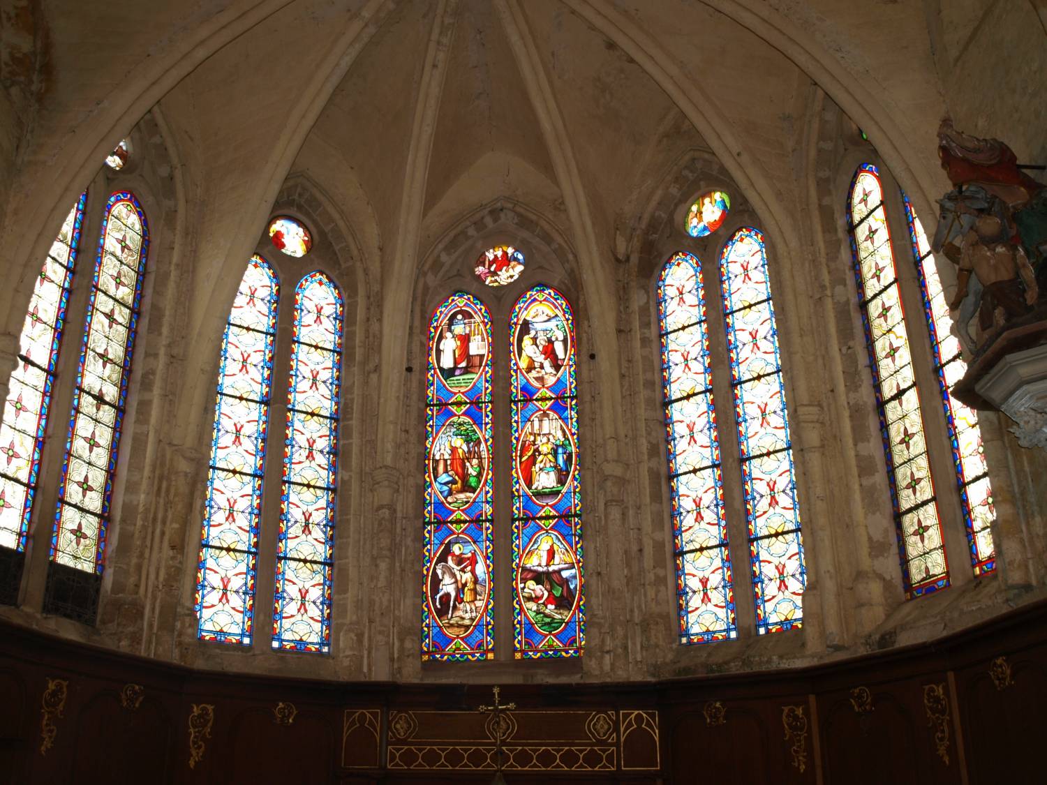 Outre ses vitraux du XIXe s., l’église conserve des vestiges de peintures murales médiévales dans le chœur. Sur le mur extérieur du chevet est encore visible une épure contemporaine de sa construction.