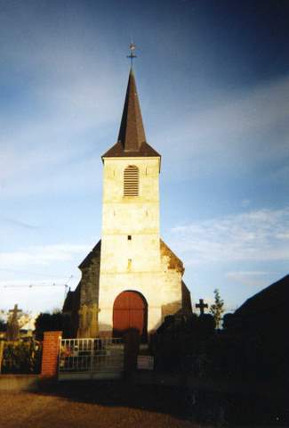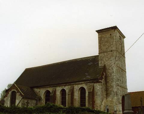 L’église Saint-Léger était autrefois succursale de la paroisse voisine de Croisette. Elle est mentionnée en avril 1093 dans le cartulaire de l’abbaye d’Auchy-lès-Hesdin à l’occasion du don d’un tiers de la dîme par Anselme de Servins d’Héricourt. L’édifice actuel est beaucoup plus tardif. La nef passe pour avoir été construite au XVIe s. par les seigneurs du lieu, les Servins d’Héricourt. C’est incontestablement la partie la plus ancienne ainsi qu’en témoignent les ébrasements moulurés des baies. Le reste de l’édifice appartient au XVIIIe s. et relève peut-être de la même campagne de travaux. Une inscription gravée sur un moellon retrouvé près de l’entrée du caveau donne la date de 1778 et les noms d’Eugène François Joseph et Louis François-Joseph de Servins (1710-1786). Les armoiries de ce dernier, associées à celle de son épouse Agnès Le Ricque (+ 1811), figuraient sur la baie aveugle au sommet de la tour. Le siècle suivant a ajouté une sacristie contre le pan central du chevet et des contreforts en brique pour étayer la nef.