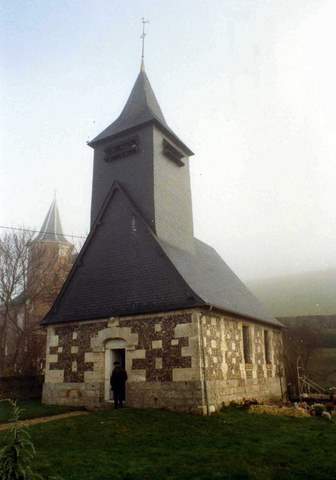 La commune d’Héronchelles, qui borde une rivière portant presque le même nom (l’Héronchelle, affluent de l’Andelle, à une vingtaine de kilomètres à l’est de Rouen) connaît une occupation humaine très ancienne. Son église dédiée à sainte Geneviève est attestée dès le xiie s., alors qu’elle dépendait de l’abbaye du Bec-Hellouin. L’édifice actuel date du début du xviiie s. comme en témoigne précisément la requête du curé pour la reconstruction de son église, adressée en mai 1702 à l’archevêque de Rouen (archives départementales). On construisit tout d’abord le vaisseau unique de la nef et le chœur plus étroit qui lui fait suite, séparés par un arc triomphal. À la fin du xviiie s., ce dernier fut augmenté d’un chevet à trois pans. L’appareil de la première campagne est composé d’un soubassement de grès puis d’une élévation en silex gris avec des chaînes harpées et des insertions de pierres calcaires. Celui du chevet se compose d’assises alternées de silex et de briques qui forment aussi les chaînes d’angle. L’un et l’autre sont d’un bel effet. La nef et le chœur, tous deux recouverts de berceaux lambrissés, sont éclairés par six baies, tandis que le beffroi, construit en œuvre et s’appuyant sur le mur occidental de la nef, est supporté par des poteaux de bois. Le chœur comporte de beaux lambris du xviiie s., derrière lesquels s’ouvre la sacristie pour laquelle on construisit le chevet à trois pans. Cette petite église contient d’ailleurs un nombre remarquable d’œuvres d’art anciennes.On notera particulièrement les statues des saints Côme et Damien, une Vierge à l’Enfant et une sainte Geneviève, toutes en pierre polychrome du xvie s., une sainte Geneviève plus tardive en bois polychrome provenant d’une église proche dédiée à la même sainte, un saint Sébastien en bois polychrome du xvie s. ; mais aussi une toile représentant le martyre de ce même saint, du xviiie s., et une bannière de sainte Geneviève d’époque Charles X. Si l’église était dans un bon état général, la toiture d’ardoise nécessitait des travaux importants, excepté la flèche, déjà restaurée en 1974. Pour cette réparation de la couverture, la Sauvegarde de l’Art français a versé une subvention de 50 000 F, en 1988.
