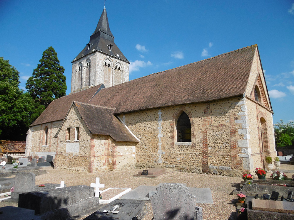 L’église actuelle dépendait de l’abbaye de Fécamp. Elle est mentionnée comme faisant partie du domaine de Heudebouville en 1027. La tour-clocher est datée du XIIIe siècle et a été restaurée en 1788, juste après la nef, en 1744. L’église est en site classé depuis 1926.