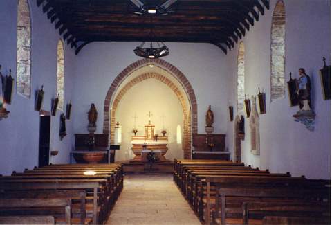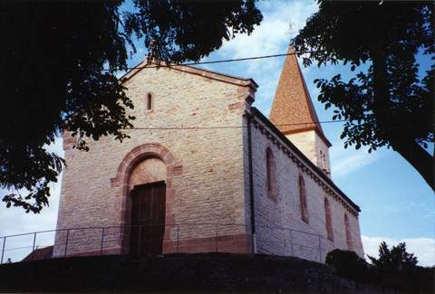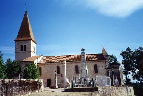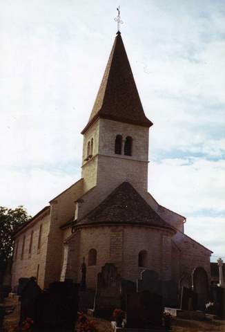 Entourée de son cimetière, sur un coteau dominant la Seille, l’église de Huilly est attestée dès 981, date à laquelle elle est donnée à l’abbaye de Tournus. Elle était alors dédiée à saint Jean et non, comme aujourd’hui, à saint Georges. Les parties les plus anciennes de l’édifice actuel remontent au XIIe s. Il s’agit essentiellement du clocher, du chœur et de l’abside. Celle-ci, voutée en cul de-four brisé, a conservé ses petites ouvertures romanes, très ébrasées à l’intérieur comme à l’extérieur et entourées de contreforts, assez plats à l’est, plus saillants au nord et au sud. Une corniche à modillons non sculptés , qui supporte une toiture en tuiles plates, se prolonge dans la travée droite du chœur, légèrement plus élevée et voûtée en berceau brisé. De l’extérieur, seul son mur sud est visible, du fait de l’adjonction d’un presbytère sur le flanc nord. Il présence les mêmes caractéristiques que celui de l’abside. Sur cette travée de chœur s’élève un clocher carré ouvert de baies géminées. La flèche est moderne. La nef, formée d’un simple vaisseau rectangulaire de quatre travées, porte la trace d’au moins trois campagnes de construction. La plus récente, en 1876, lui a donné son aspect actuel, par la construction d’une travée supplémentaire à l’ouest et du portail, mais aussi par la reprise et l’agrandissement de toutes les baies. Les travaux de restauration entrepris par la commune ont permis de dégager une ancienne porte qui avait été murée, mais ils ont aussi fait disparaître tous les enduits extérieurs ainsi que le plafond de la nef, lequel a laissé place à des poutres apparentes qui n’étaient manifestement pas destinées à l’être à l’origine. La Sauvegarde de l’Art Français y a contribué à hauteur de 80 000 F en 1994.