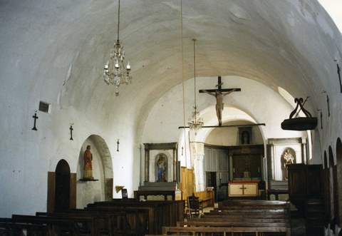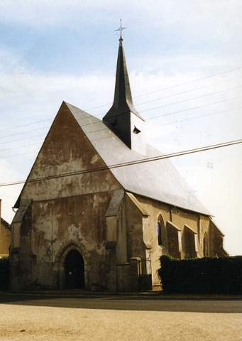 Église Notre-Dame dépendait de l’ancien diocèse de Chartres. Ce petit édifice du XIIe s., bien qu’ayant subi de nombreuses transformations après la guerre de Cent ans et au XIXe s., a conservé une structure romane proche de celle des églises voisines de Nourray et Lancé. Il se compose d’une nef unique et d’un chœur terminé par une abside semi-circulaire. La travée droite du chœur a été éclairée au XVe s. par une grande baie à rem plage flamboyant percée dans son mur sud et couverte d’une nouvelle charpente que l’on a prolongée sur l’abside surélevée en la circonstance. Malgré ces transformations, les dispositions d’origine sont encore très lisibles. Quatre contreforts, formés de colonnes jumelles surmontées d’une colonne simple supportée par une tête sculptée et terminée par un chapiteau, scandent le chevet. Entre ces contreforts s’ouvraient des fenêtres, aujourd’hui bouchées, à double voussure en plein cintre, flanquées de colonnettes que l’on voit encore sur la fenêtre nord, dissimulée par la sacristie. Comme à Nourray, la voussure de la fenêtre d’axe polylobée est ornée d’un cordon de dents de scie. La corniche qui surmonte cet ensemble se compose de petites arcatures retombant sur des modillons sculptés de têtes. La nef, très endommagée pendant la guerre de Cent Ans, a été renforcée par des contreforts et des fenêtres en arc brisé, dans le goût du temps, ont été percées dans chaque travée. Elle est surmontée par un clocher carré sommé d’une flèche. Le portail à double ressaut de pierre date également de cette époque. C’est à cette même campagne de travaux que se rattache la construction de la charpente lambrissée de la nef de 12,50 m de haut, maintenue par une structure de poteaux. Au XIXe s. l’ensemble a été dissimulé sous une voûte de plâtre et ses retombées. Le chœur dont la travée droite est séparée de l’abside par un arc en plein cintre et des colonnes engagées a été réaménagé au XVIIIe s. et doté alors de lambris, d’un maître-autel et d’autels latéraux. Ce décor classique dissimule les baies et les cinq arcatures romanes retombant sur des colonnes engagées qui le scandaient à l’origine. Outre ce décor, la chaire à prêcher et le confessionnal du XVIIIe, il faut signaler un crucifix du XVIe s., un banc coffre du XVe s. décoré de panneaux de serviettes conservé dans la sacristie et les vantaux XVIe s. du portail ouest. La nef présente d’importants désordres dus à des aménagements malencontreux. Par ailleurs, le relevé de la charpente a mis en évidence un grave affaissement de la troisième ferme, sous la partie ouest du clocher et des glissements importants des doubles sablières des murs goutterots. La moitié des pièces de charpente du clocher sont hors d’usage. Aussi, la Sauvegarde de l’Art français a subventionné en 1998, à hauteur de 200 000 F, la restauration de la charpente et de la couverture de la nef et du clocher ainsi que les maçonneries et les enduits, repris au milieu du siècle avec du béton et du ciment gris (façade ouest et contreforts).