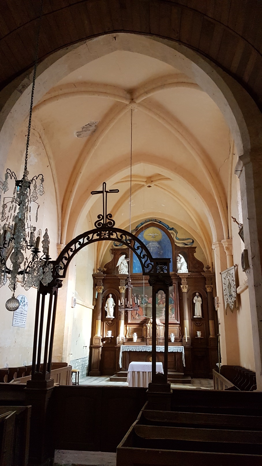Quant au chœur, tout porte à penser que le bâtiment actuel date du XVIIe siècle. Fermé pour l’usage d’une communauté monastique, il aura fallu élargir la nef pour accueillir la population du village. Il a remplacé un chœur d’une seule travée.
