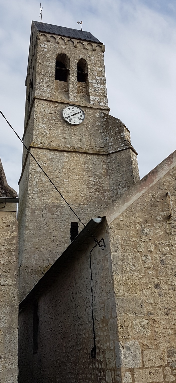 Le clocher est moins ancien que la nef mais a dû, lui aussi, être étayé par un contrefort qui empiète sur celle-ci. Le bas-côté semble n’avoir été ajouté qu’au XVIIIe siècle. On a alors abattu le mur nord de la nef et on l’a remplacé par deux grandes arches.