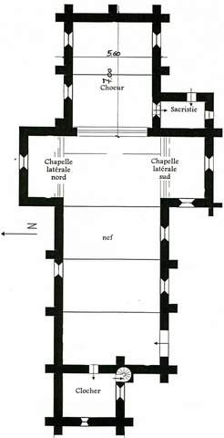 La partie la plus ancienne de l’édifice est le chœur couvert en tuiles, construit en maçonnerie de moellons calcaires noyés dans du mortier et épaulé de contreforts jumelés sur l’angle. Le chœur conserve au sud des baies en tiers-point sans remplage, alors que celles du côté nord, dont les encadrements sont en brique, ont été remaniées à la fin du XIXe siècle. Le chevet à pignon découvert est épaulé par trois contreforts, dont un central passant devant une grande baie murée et surmonté de deux baies à encadrements rectangulaires.