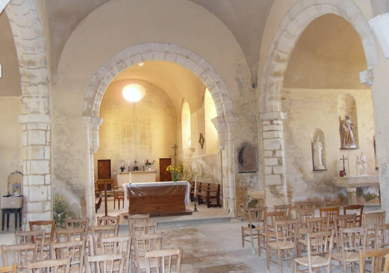 De part et d’autres de la nef s’élèvent deux chapelles formant transept. La chapelle sud est surmontée par la tour-clocher.