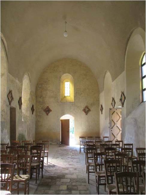 La façade Nord offre à voir une belle maçonnerie en « opus spicatum » permettant de dater la construction de l’édifice au XIe siècle, voire à la fin du Xe siècle.