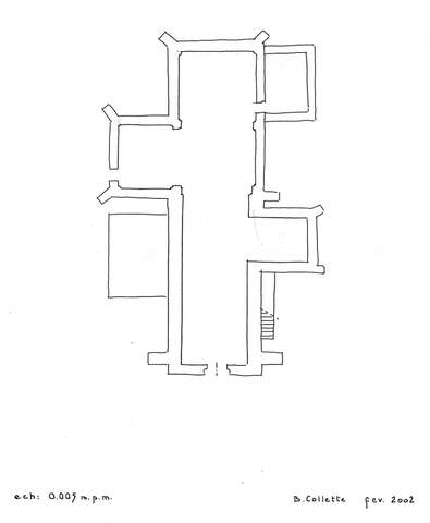Du côté sud, une arcade, semble-t-il postérieure, donne accès à la base du clocher mitoyen, tour carrée voûtée d’ogives (fin XVe-XVIe s.) au rez-de-chaussée, percée de baies en arc surbaissé à l’étage et couverte d’un toit d’ardoises à quatre pentes.