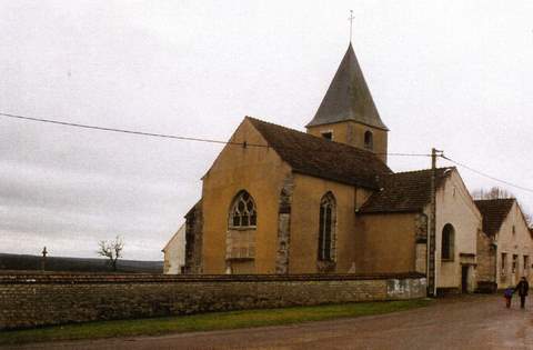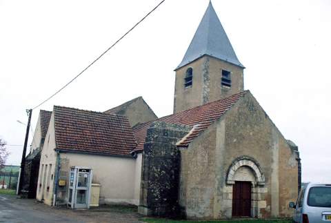 On accède à l’ouest par un portail en plein cintre dont le tympan, fait d’une seule pierre, porte une simple croix en relief. Les piédroits sont couronnés par des impostes sculptées de motifs floraux (rosaces, palmettes …). Tous ces éléments semblent indiquer une date assez ancienne, de la fin du XIe s., ou d’un XIIe s. archaïque. Sept marches permettent de descendre dans la nef, vaisseau unique, aveugle – sauf une fenêtre percée tardivement au sud – et couverte d’une lourde voûte en arc brisé, faite comme dans d’autres églises icaunaises (Chassignelles, Sarry, Censy…) de lauzes posées en tas de charge.