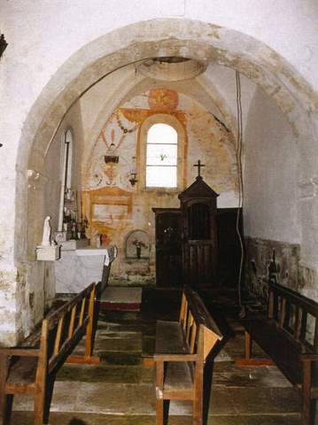 Dans la partie orientale, des sondages récents laissent apercevoir sous des enduits postérieurs de nombreuses traces de peintures murales des XVIe et XVIIe s. (médaillon avec apôtre, grands arbres décoratifs, pots à feu…), évoquant bien la richesse colorée de ces édifices ruraux à l’architecture souvent modeste.