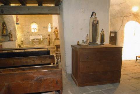 Á l’intérieur, le mobilier conserve d’intéressants retables du XVIIe s., à panneaux peints et statues, mais inégalement conservés, ainsi qu’une statue de la Vierge, du XIVe siècle.