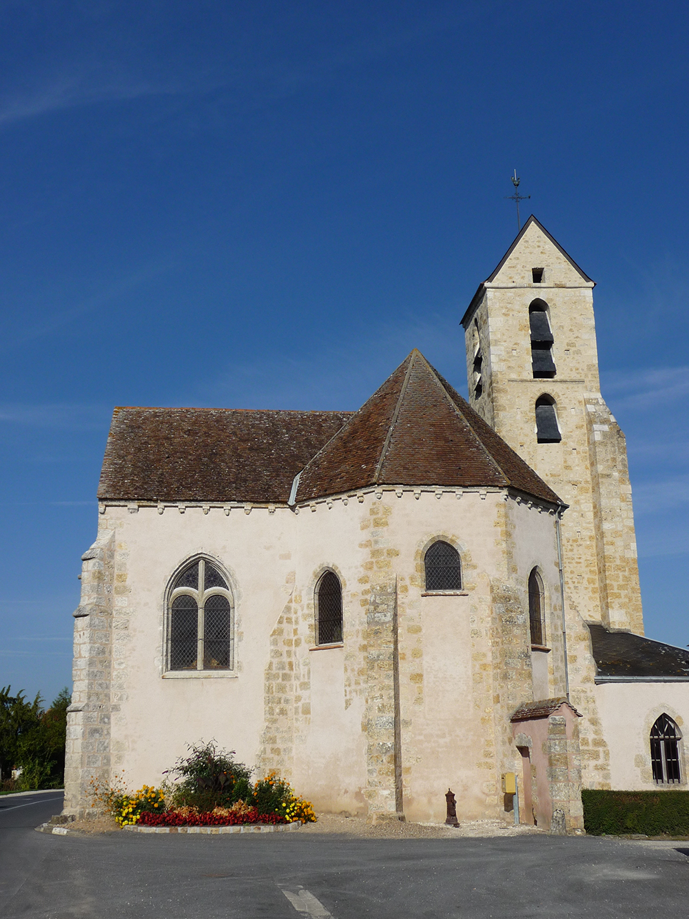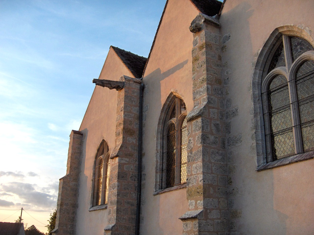 L’église a conservé sa nef romane (fin du XIème siècle), ouvrant sur un choeur gothique qui se termine par une abside polygonale à cinq pans. Le vaisseau est flanqué, au Sud, d’un collatéral incomplet. Un clocher se dresse au Nord du choeur. Les colonnettes qui reçoivent la retombée des voûtes sont ornées de chapiteaux à feuilles d’eau, feuilles de lierre ou crochets. La partie haute du clocher peut être contemporain du choeur, remontant au XIIIème siècle. Le collatéral Sud date du XVIème siècle. La création d’un collatéral unique est fréquente en Gâtinais, aux XVème et XVIème siècles.