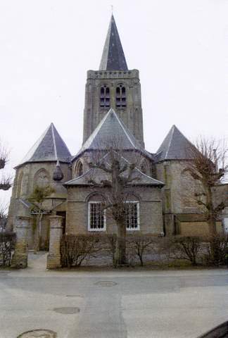 Il s’agit d’un important édifice du type « hallekerk », devenu la règle générale dans la région à partir du XVesiècle. Ses trois nefs parallèles, de hauteur équivalente, sont séparées par deux files d’arcades. La reconstruction a été faite en briques claires, dites de sable,moulurées lorsqu’elles sont utilisées pour les arcatures et les remplages, et rehaussées de temps en temps par la présence de carreaux de pierre calcaire.