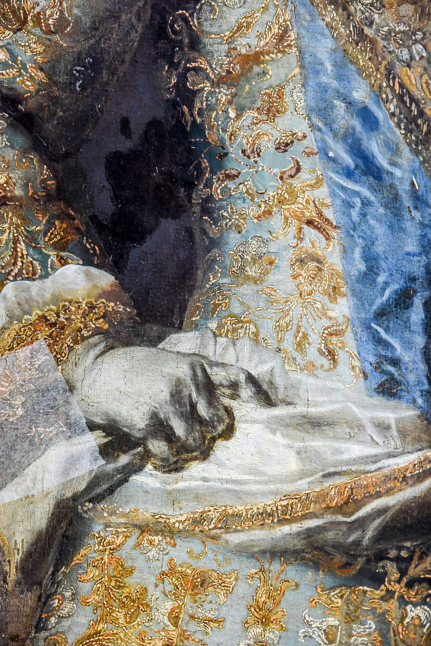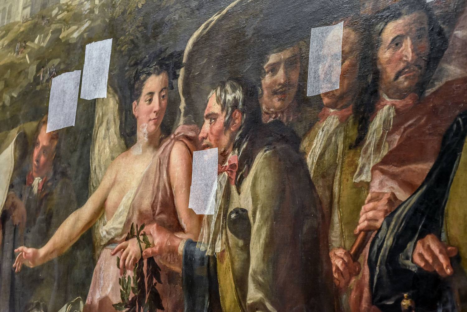Entreposée dans les réserves du musée de l’Armée, l’oeuvre n’était plus accessible au public. Recouverts d’un vernis devenu opaque, les mastics et repeints des restaurations précédentes étaient craquelés, oxydés et visibles à l’œil nu : dénivelés, matités, tons désaccordés altéraient la lisibilité de l’oeuvre tandis que des soulèvements localisés pouvaient entraîner de nouvelles pertes de la couche picturale. La planéité de l’oeuvre était par ailleurs compromise par des cloques et déformations du support, désordres qu’une intervention d’urgence, en 2003, n’avait pu qu’atténuer. Cette nouvelle restauration a permis de rendre au tableau sa splendeur d’antan.