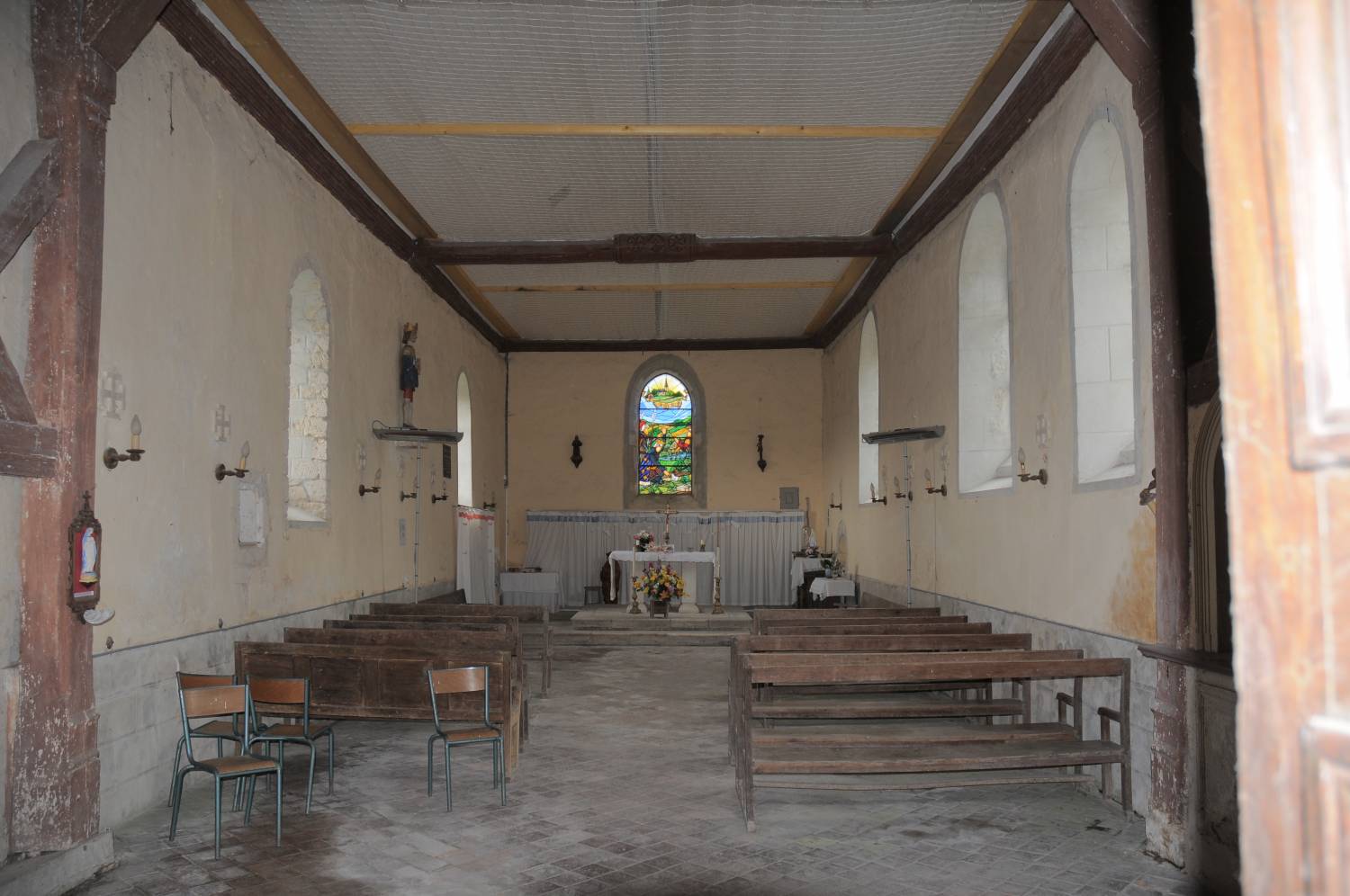 Il s’agit d’un modeste édifice à vaisseau unique et chevet plat. Un porche en charpente s’appuyant sur la façade ouest abrite le portail d’entrée en arc brisé, simplement chanfreiné. Très peu d’éléments permettent d’avancer une datation. Deux baies étroites s’ouvrant dans le mur sud pourraient attester l’existence d’un état roman. Le chevet est percé d’une fenêtre en arc brisé qui semble dater du XVe ou du début du XVIe s., tout comme les entraits et poinçons de la charpente visibles sous la voûte en berceau de plâtre qui couvre en intégralité le vaisseau. Deux contreforts semi-circulaires sur la façade sud contrebutaient peut-être un clocher plus ancien. Implanté plus à l’ouest et terminé par une flèche élancée, le clocher de charpente actuel s’appuie dans la nef sur un tabouret contreventé par des croix de Saint-André, attribuable au XVIIe siècle.