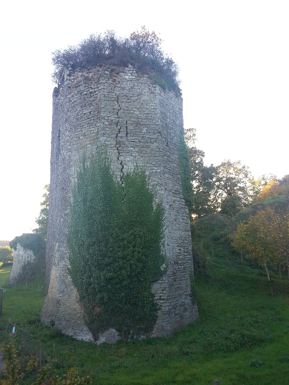 Il est aujourd’hui isolé car les murs de courtine ont disparu. La distribution verticale se faisait par une tourelle disparue contenant un escalier à vis.