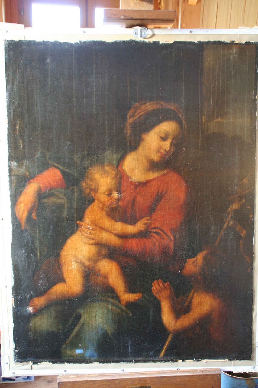 et ne bénéficiait d’aucune protection spécifique. De plus, la colle employée l’avait totalement imprégnée, ce qui, à terme, avait causé de nombreux dégâts à la couche picturale. Enfin, le vernis utilisé pour protéger la toile avait foncé et était totalement inesthétique. Il aurait été anormal qu’une œuvre d’une telle importance continue d’être conservée dans de telles conditions. L’intervention d’un restaurateur a permis dans un premier temps de décoller la toile du mur afin de la protéger de l’humidité et dans un second temps d’ôter la couche de vernis qui lui donnait cet aspect brun et ciré.