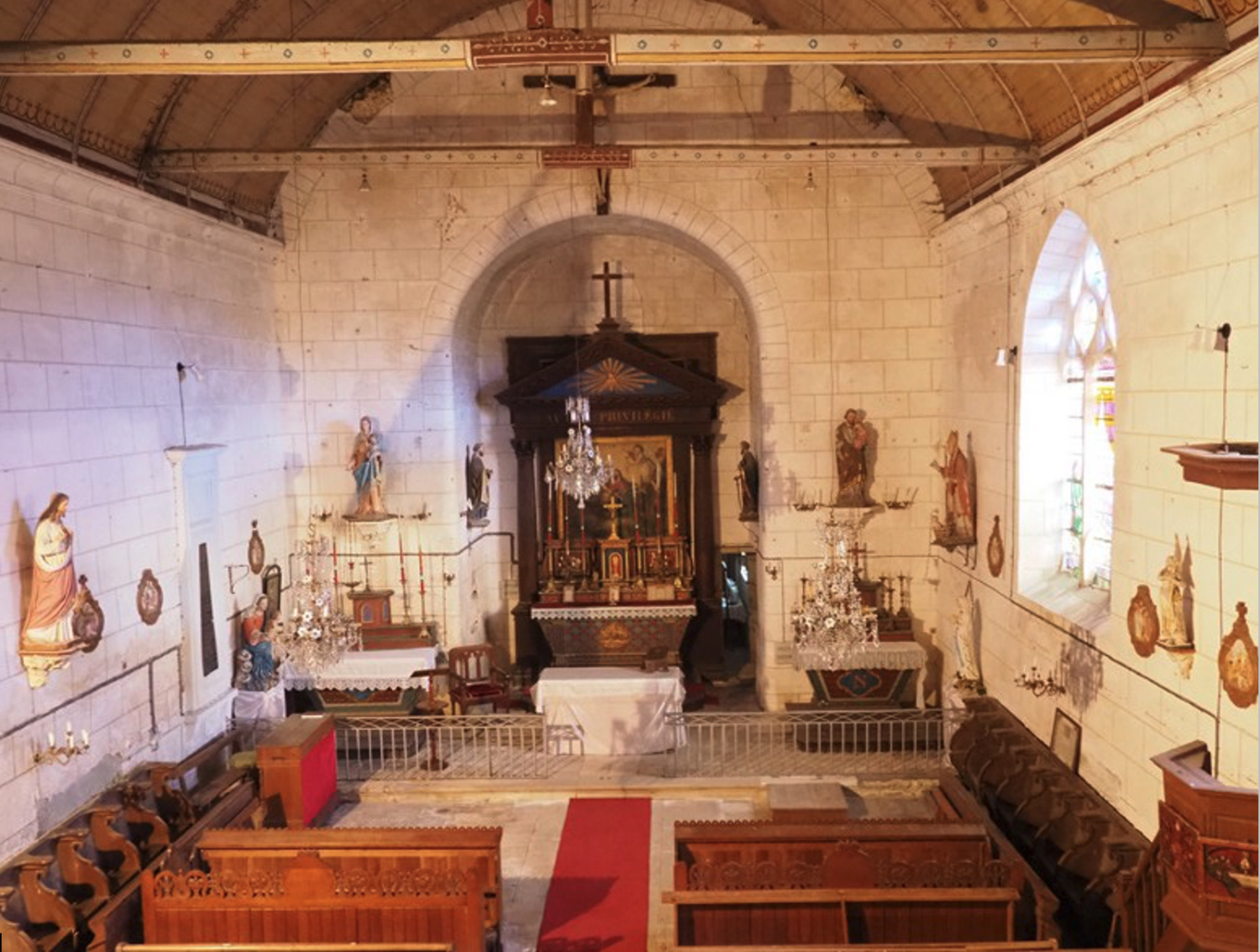 Sur le mur oriental, une dalle funéraire de Charlotte de Rancher de la Ferrière décédée le 22 septembre 1788 est visible.