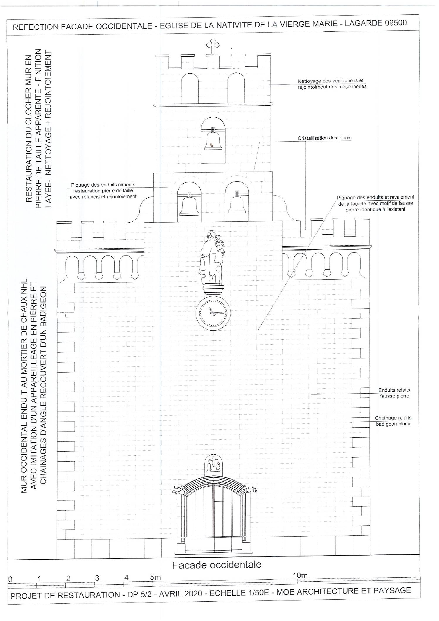 L’église est «enchâssée» dans le bâti du village de Lagarde et sa façade occidentale se situe dans la continuité des immeubles domestiques voisins.