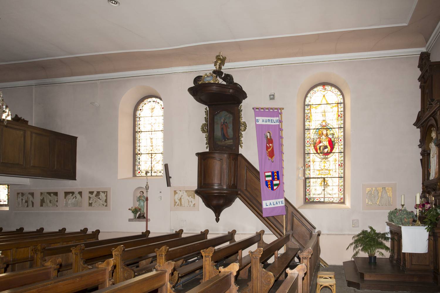 Au XVIIIe siècle, Lalaye possédait une importante communauté de mineurs qui a largement contribué à la construction de cet édifice. D’après des travaux historiques, il existait une chapelle dédiée à Sainte-Aurélie en 1665.