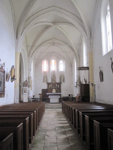 De plan allongé et à chevet plat, il comporte un vaisseau unique formé de quatre travées de plan carré, la dernière constituant le chœur. Les faisceaux de moulures des voûtes d’ogives actuelles et de leurs retombées sont caractéristiques du XVe siècle. Elles ont dû remplacer des voûtes bombées à liernes de type angevin, comme on en voit encore notamment à Fontaine-en-Sologne (Loir-et-Cher), ainsi que le montrent les supports subsistant à l’entrée du chœur, formés de trois colonnettes coiffées de chapiteaux à crochets. Les cinq étroites fenêtres en arc brisé éclairant le chœur doivent également remonter au XIIIe siècle. Les deux baies à remplage percées dans le mur sud de la nef datent quant à elles de la reconstruction du XVe s., de même que le portail flamboyant abrité sous un imposant clocher-porche, dont les parties hautes éclairées par des baies géminées en plein cintre sont sans doute plus récentes.