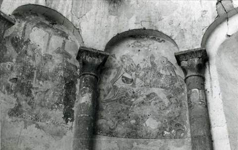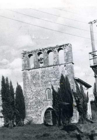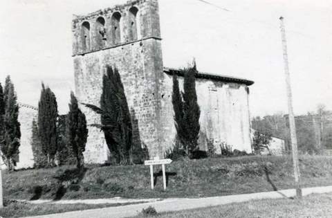 Église paroissiale Saint-Pierre où le culte n’est plus habituellement célébré. Cette église mériterait d’être inscrite à l’inventaire supplémentaire des Monuments historiques. Se détachant sur un vaste et riant paysage, son clochermur, à quatre arcades, est d’une simple mais rare élégance et il a conservé l’une de ses cloches. La curieuse porte occidentale est surmontée d’un arc brisé qui donne une date approximative pour tout l’édifice, notamment pour sa belle abside décorée d’une arcature de tradition encore romane. Des fresques de la fin du Moyen Âge décorent ce chœur. Ces peintures ont été étudiées par Madame de Maupeou, inspecteur principal des Monuments historiques et membre de notre comité d’action. Elles présentent un intérêt très particulier. Le dessin en est habile tandis que la composition pèche par un désir de trop exprimer dans un espace restreint. Il faut sauver ces peintures comme le monument lui-même. La Sauvegarde de l’Art français donne 22 000 F pour réparer les couvertures et conforter les maçonneries sous le contrôle de M. l’architecte des Bâtiments de France. Ce n’est que lorsque ces travaux de première urgence auront été exécutés que les services spécialisés des Monuments historiques procéderont au refixage des peintures murales et celles-ci attireront certainement de plus en plus de touristes.